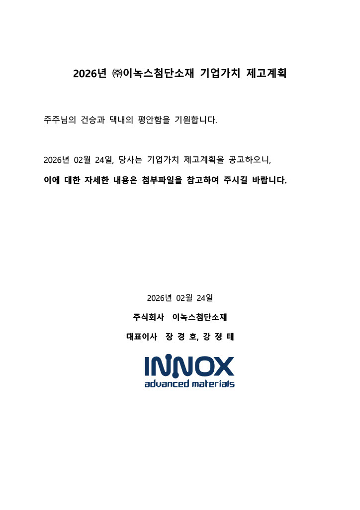 2026년 (주)이녹스첨단소재의 기업가치 제고계획을 아래와 같이 공고합니다.