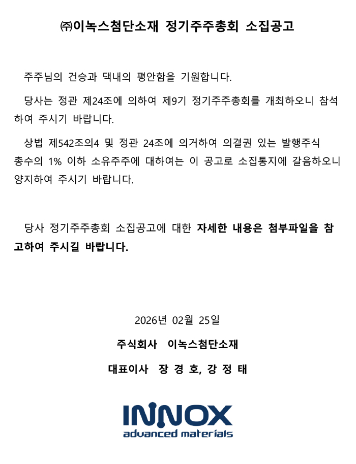 ㈜이녹스첨단소재 정기주주총회 소집공고