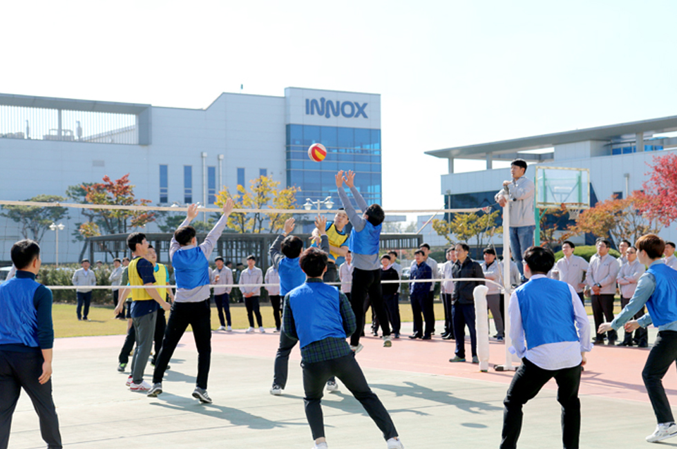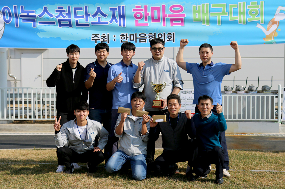 2017년 11월 한마음협의회 주관 “이녹스첨단소재 한마음 배구대회”가 개최되었습니다 3일간의 치열한 조별 예선을 통해 각 조의 1위와 2위 팀이 결승전과 3•4위 결정전에 진출하였으며, 11/7(화) 3•4위 결정전과 대망의 결승전 경기가 사내 배구장에서 열렸습니다. 3•4위 결정전인 ‘품질그룹’과 ‘생산그룹 B팀’의 경기에서는 안정적인 경기운영을 바탕으로 기선제압에 성공한 ‘생산그룹 B팀’이 승리하며 3위를 확정 지었고, ‘경영지원총괄 & EM부문(영업)’과 ‘생산그룹 A팀’의 결승 경기에서는 사이 좋게 1세트씩 주고 받은 상황에서 마지막 3세트에 제조의 막강화력을 보여준 ‘생산그룹 A팀’이 세트를 가져가며, 2017년도 이녹스첨단소재 한마음 배구대회 우승컵을 들어올렸습니다. 추가로 사내 농구장에서 진행된 ‘Half Line Shoot’ 이벤트에서는 총 4명의 인원이 성공하여 Alton 전기자전거와 인피자 자전거 등을 경품으로 받았습니다. |