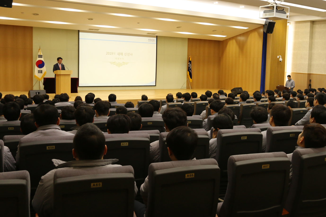 2019년 희망찬 새해를 맞아 시무식이 진행되었습니다. 이날 대표이사는 신년사를 통해 사업중심의 조직 구조를 견고히 하여, 지속 성장할 수 있도록 2019 경영목표 달성을 위해 임직원 모두 하나되어 사업을 추진해 나갈 것을 당부하였습니다. |