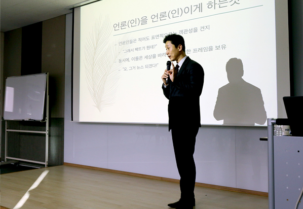 2019년 첫 명사초청 강의로 중앙대 정준희 교수를 모시고, ‘언론! 어떻게 읽고, 어떻게 다룰 것인가?’ 라는 주제로 특강이 진행 되었습니다. 정준희 교수께서는 언론의 기능과 역할 그리고 현재 언론이 처한 현실에 대한 이야기를 생동감 있게 전해 주셨습니다.