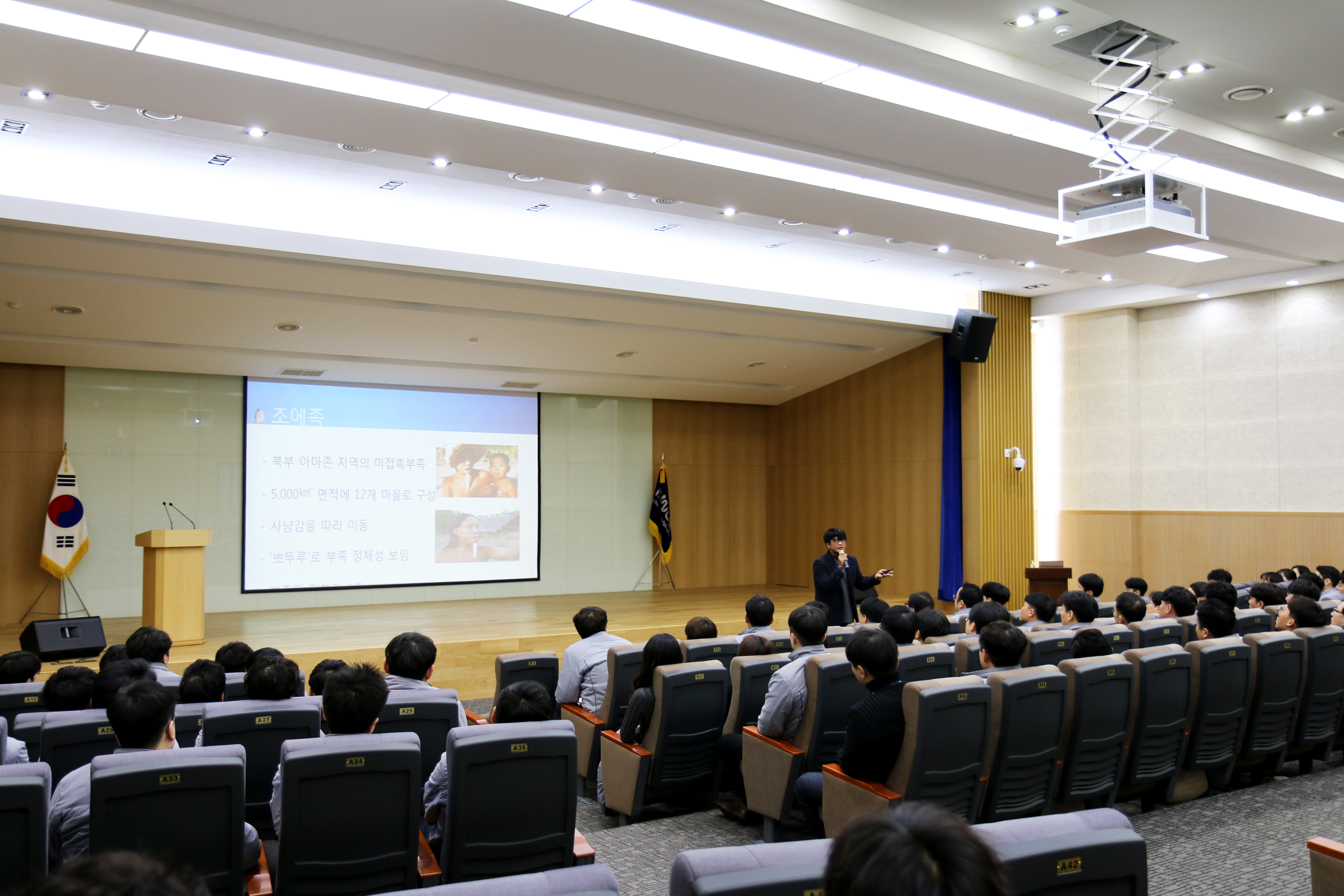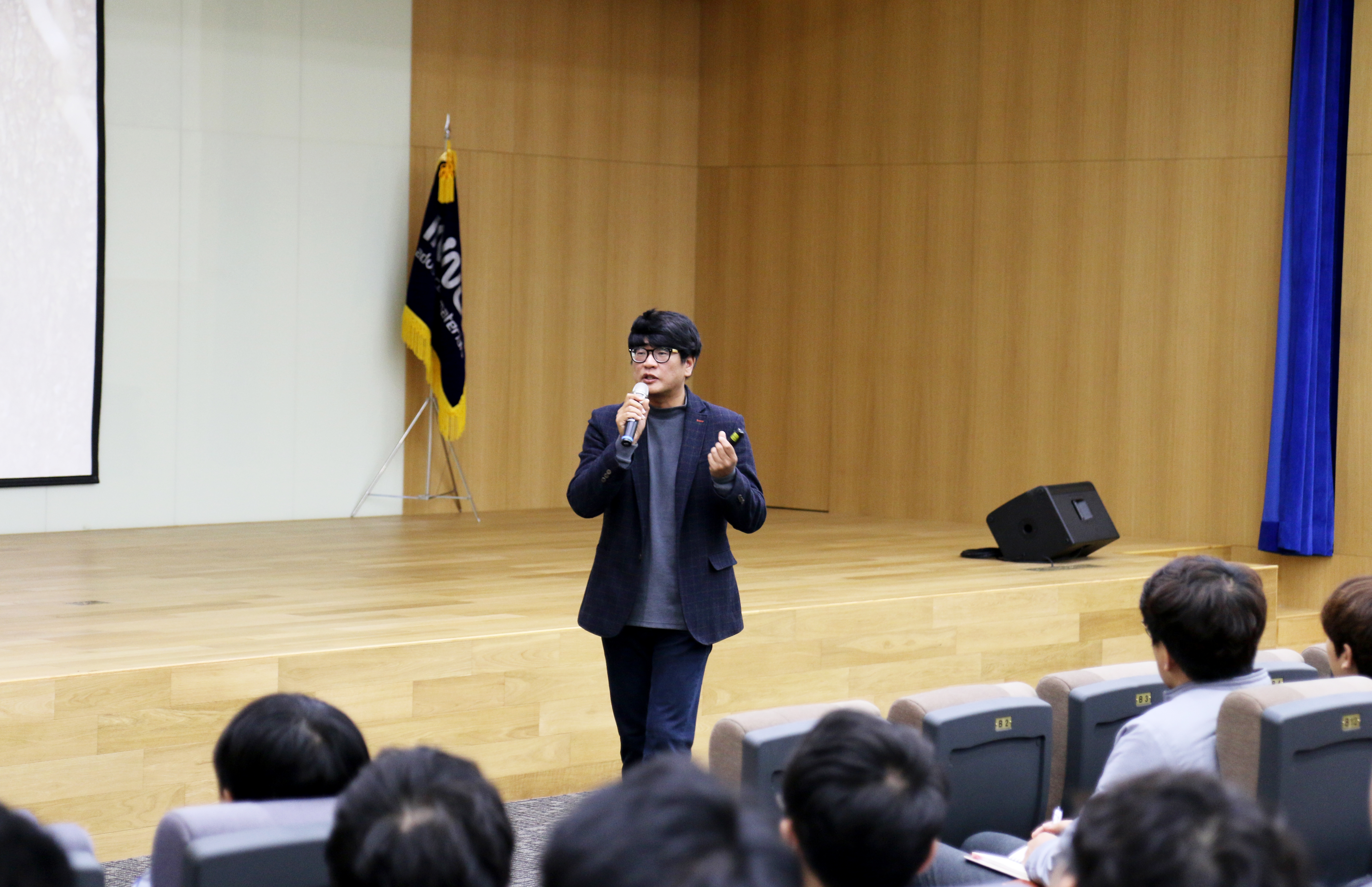 2020년 첫 명사초청 강의는 MBC 교양제작국 김진만 PD님을 모시고 진행했습니다. '아마존의 눈물', '남극의 눈물' 등 높은 시청률을 자랑하는 수 많은 다큐멘터리를 제작한 PD님의 이야기를 들으며 다큐라는 장르에 흥미롭고 친근하게 접근할 수 있었습니다. "당장의 일과 전혀 관계없는 경험을 통해 창의적인 생각을 만들어내고 결국 인생을 바꾸는 기회도 만날 수 있다. 그러니 일단 부딪혀 보고 많은 경험을 만들어 가라."는 메시지를 통해 열정과 도전에 대한 생각을 다시 한 번 해보는 기회가 되었습니다. |
