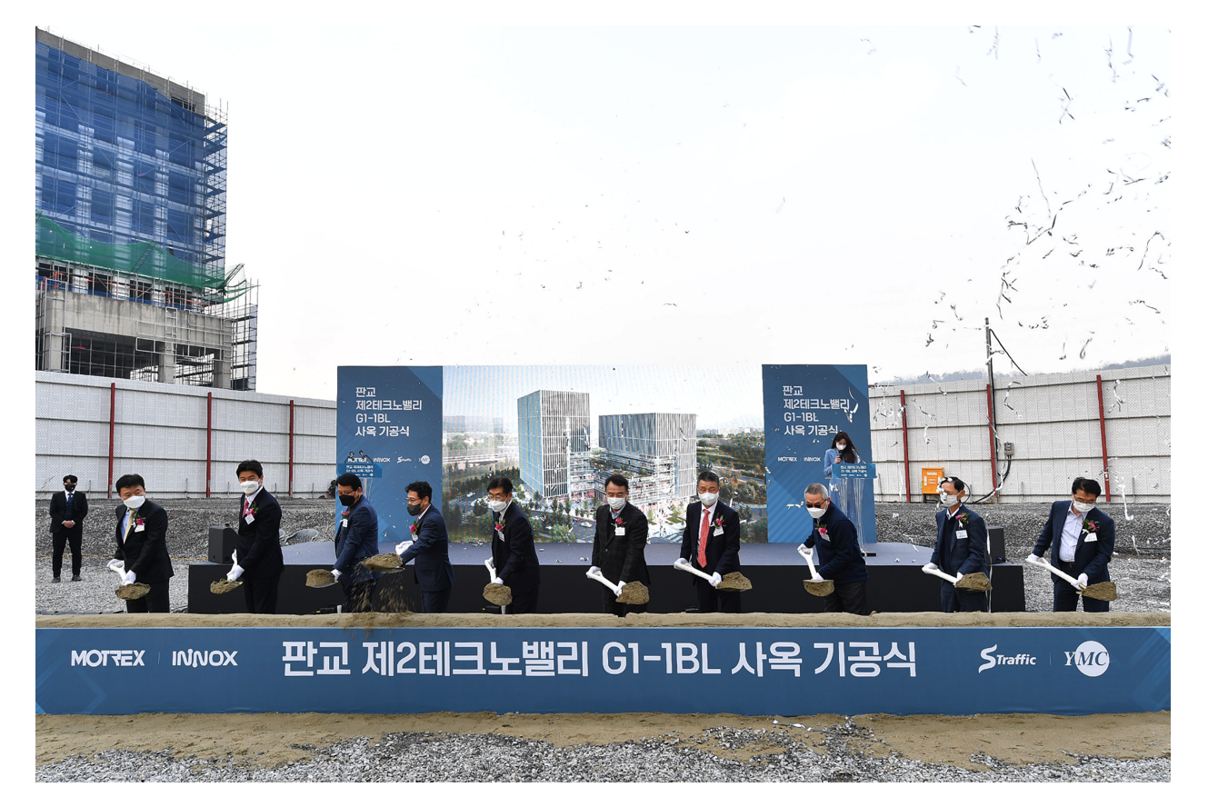 지난 12월 15일, 이녹스첨단소재는 판교 제2테크노밸리 內 신 사옥 부지에서 건축공사 기공식 행사를 개최하였다. 신 사옥은 경기도 성남시 금토동, 시흥동 일원에 위치한 "판교 제2테크노밸리 조성사업"으로 추진하게 되었으며, ㈜이녹스첨단소재,모트렉스㈜, 에스트래픽㈜,와이엠씨㈜ 는 산업단지 내 복합용지 중 G1-1용지에 산업시설 및 지원시설로 이루어진 집합건물을 건설하기 위하여 컨소시엄을 구성하였다. 사옥 건물은 대지 면적 9,089 ㎡ (2,749 평), 연면적 64,863 ㎡ (19,621 평)에 지하 5층, 지상 13층 규모로 2024년 4월에 준공할 계획이다. 이날 행사에는 컨소시엄 회원사의 대표이사 및 건축 관계자와 PM(Project Management), CM(Construction Management), 시공사 관계자가 참석하여 자리를 빛냈다. |